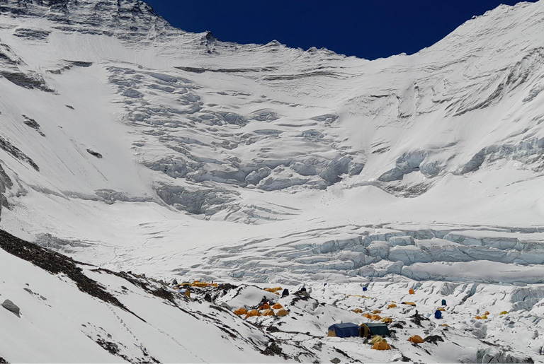 An impressive ring of three peaks makes up the Lhotse massif: Lhotse East or Middle, Lhotse & Lhotse Shar. The South Face of Lhotse is one of the largest mountain faces in the world. We attempt to climb via the normal route to the tallest peak of the Lhotse massif. Lhotse BC is located beside the Khumbu Glacier. The section during the climb that has been unanimously declared the most dangerous is the Khumbu Icefall. The first successful ascent of the mountain was in 1956 by the Swiss through the West Face. The South Face though attempted many times but was successfully climbed only in 1984 by a Czech expedition. This beautiful massif also holds immense promise as it is little developed and offers fascinating opportunities.