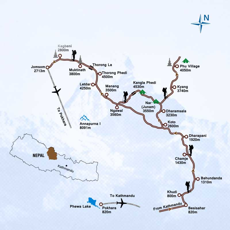 Nar Phu predominantly lies in Manang district of Gandaki Zone. In the beginnings we have follow the Annapurna Circuit trail part one till Koto. Nar Phu valley is contracted and forested, the valley opens up to a vast area of high snow-topped peaks, prehistoric villages and high elevated grazing lands. Very minority number of tourists has walked around this region. While trekking to this occasionally trekked trail we will be camping along the way to Nar and Phu, or we will be oraganizing home stay trip to experience and interact with locals. We visit some of the virgin and attractive villages of the Tibetan Buddhist. Buddhist pilgrims probably makes visit to Phu in order to visit the well-known monastery, Tashi Lha Khang and get a blessing from Lama.