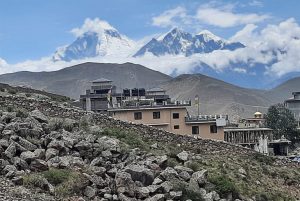 Start your journey through arid landscapes, crossing small ridges and dusty trails. Pass Tangbe village, known for its whitewashed houses, apple orchards, and buckwheat fields. Cross the Kali Gandaki River via a suspension bridge and gradually climb toward Chele. The red cliffs and views of Nilgiri peaks create a dramatic Himalayan backdrop. Overnight at a guesthouse in Chele.